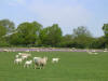 Derrière moi les traces entourent les prés où paissent les moutons