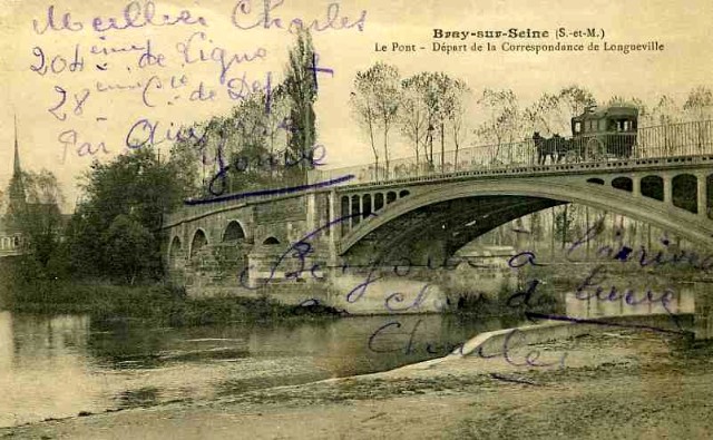 Diligence se rendant à LONGUEVILLE pour assurer la correspondance avec le train MULHOUSE - PARIS EST Quelques fois il fallait le pousser pour lui permettre de monter le pont de Bray